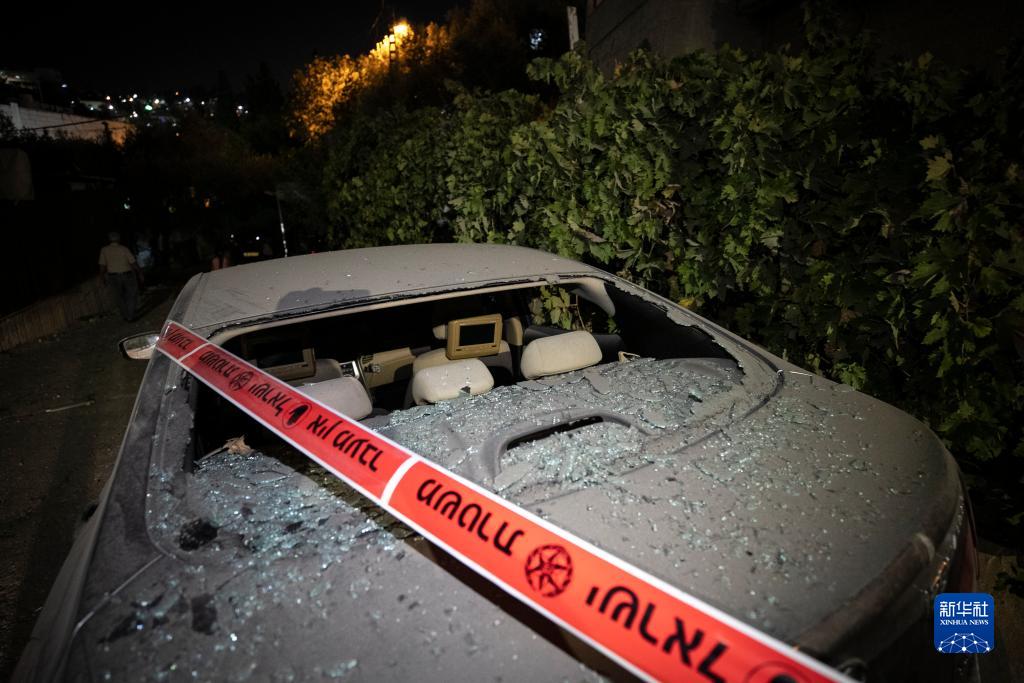 10月9日,在耶路撒冷以西的阿布高什村,一輛汽車(chē)遭到火箭彈破壞。