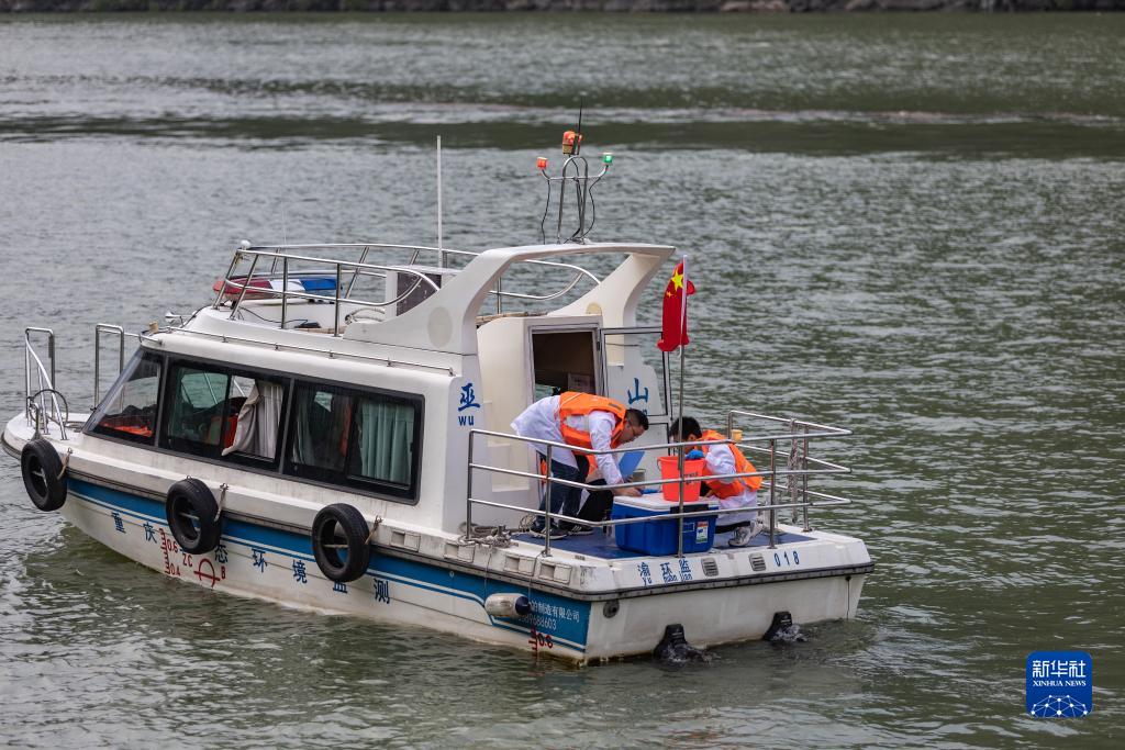 10月9日,重慶市巫山縣生態(tài)環(huán)境監測站的工作人員在長(cháng)江巫峽口段進(jìn)行水質(zhì)監測采樣。