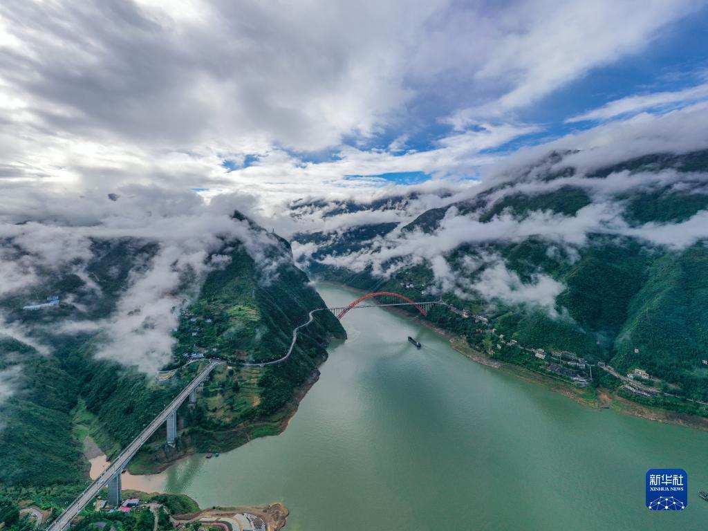 這是6月30日在重慶市巫山縣拍攝的長(cháng)江巫峽口一帶景色(無(wú)人機照片)。