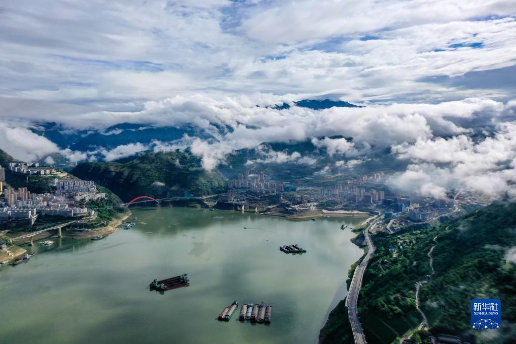 這是6月30日在重慶市巫山縣拍攝的長(cháng)江巫山段一帶景色(無(wú)人機照片)。