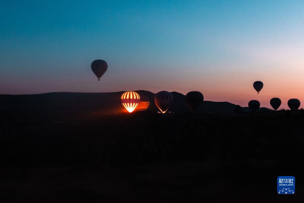 10月8日清晨,熱氣球在土耳其卡帕多基亞起飛。
