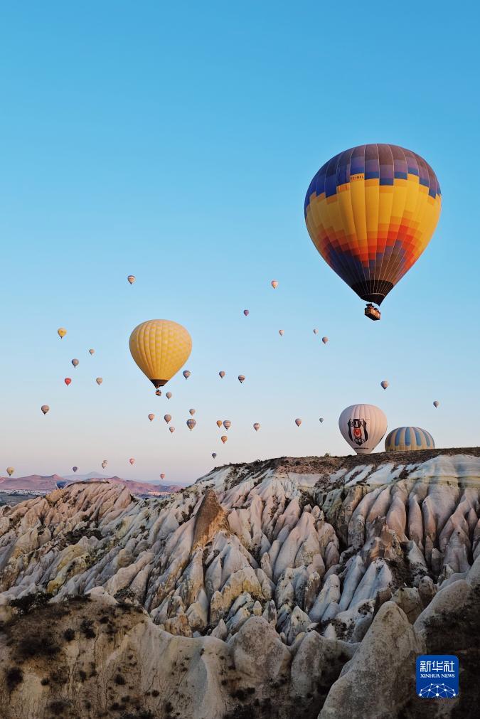 這是10月8日在土耳其卡帕多基亞拍攝的熱氣球(手機照片)。