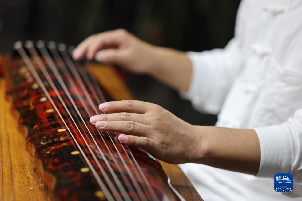 10月9日,河南省蘭考縣堌陽(yáng)鎮善斫琴社的斫琴師徐冰在彈奏古琴。