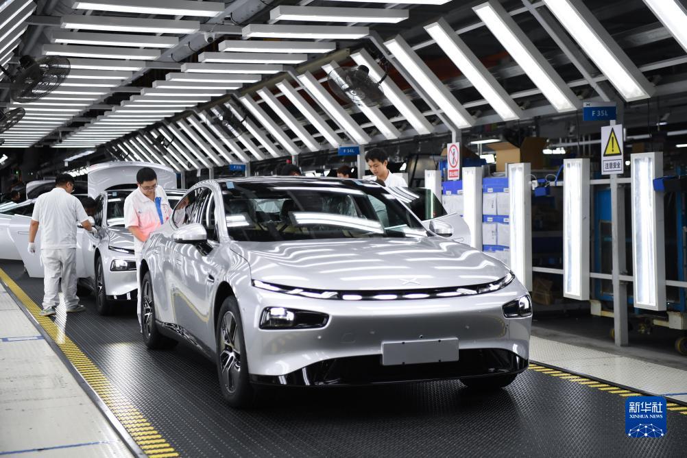 10月9日,工作人員在廣東肇慶小鵬汽車(chē)智能網(wǎng)聯(lián)科技產(chǎn)業(yè)園內總裝車(chē)間查看即將下線(xiàn)的整車(chē)。