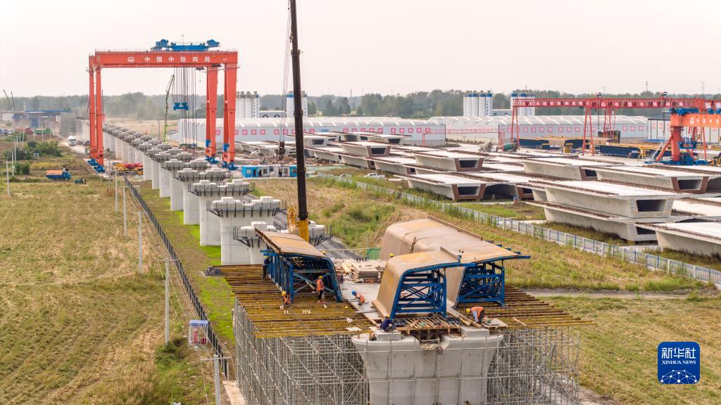 10月9日,中鐵四局施工人員在阜淮鐵路蒙城制梁場(chǎng)作業(yè)。