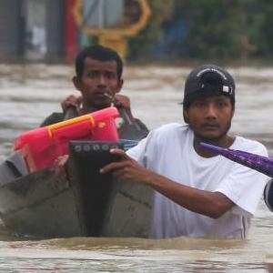 由于近日的強降雨,緬甸南部勃固地區遭遇洪水侵襲。