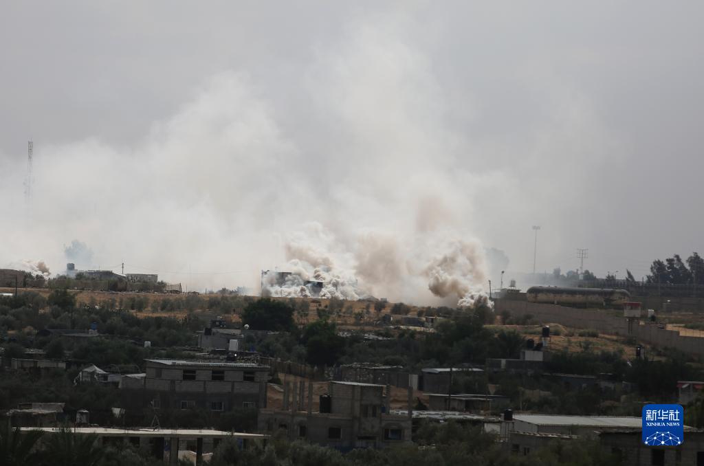 10月10日,加沙地帶與埃及接壤的拉法口岸遭以色列空襲后冒出滾滾濃煙。