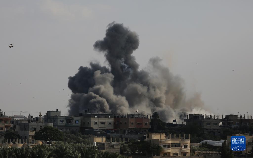 10月10日,在加沙地帶南部城市拉法,以色列空襲后升起濃煙。