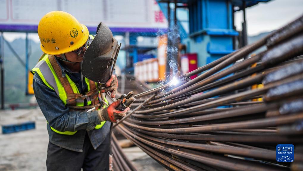 工人在納晴高速六枝特大橋項目現場(chǎng)進(jìn)行施工(10月9日攝)。