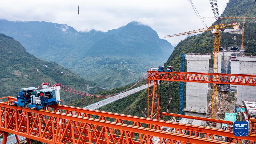 建設中的納晴高速烏蒙山大橋(10月10日攝,無(wú)人機照片)。
