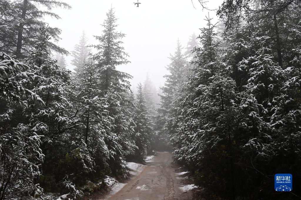 金秋時(shí)節,甘肅省張掖市肅南裕固族自治縣境內的祁連山脈迎來(lái)一場(chǎng)降雪,云杉翠柏與皚皚白雪相映成趣,美不勝收。