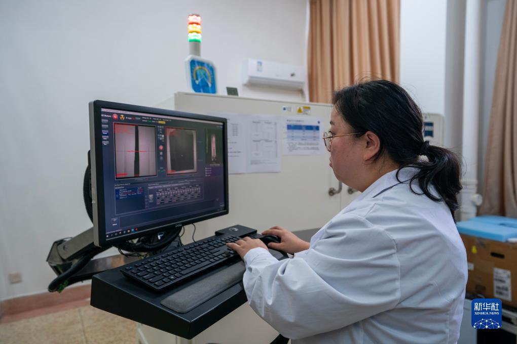 10月11日,云南大學(xué)古生物研究院“節肢動(dòng)物演化研究”課題組成員麥慧娟在調整CT掃描儀參數。