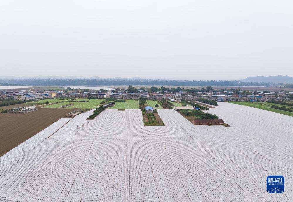 10月11日拍攝的蓬安縣錦屏鎮中壩社區蔬菜種植基地(無(wú)人機照片)。