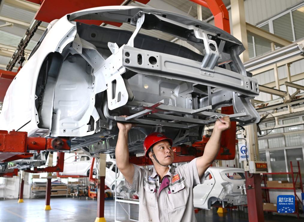 10月11日,河北元氏縣一家多功能車(chē)輛生產(chǎn)企業(yè)工人在生產(chǎn)線(xiàn)上工作。