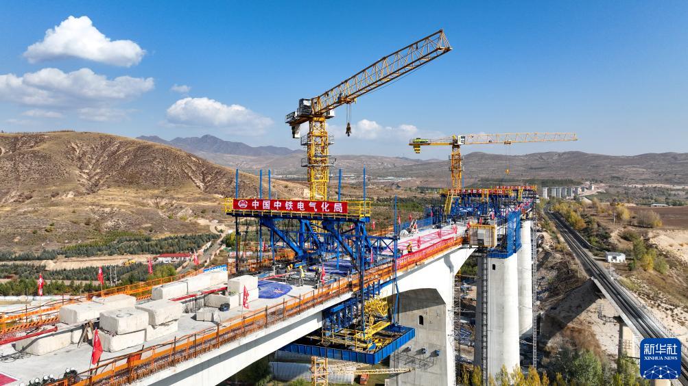 10月12日拍攝的集通鐵路電氣化改造工程多倫河特大橋剛構連續梁(無(wú)人機照片)。