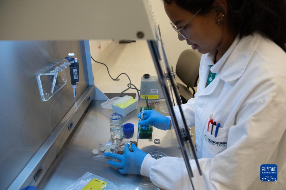 10月11日,一名科研人員在位于巴西圣保羅州克拉維紐斯的隆平巴西分子生物實(shí)驗室內工作。