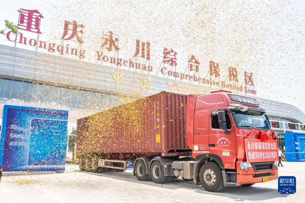 重慶永川綜合保稅區首貨出區暨長(cháng)城汽車(chē)KD件出口始發(fā)車(chē)順利發(fā)車(chē)(2023年7月11日攝)。當日,重慶永川綜合保稅區首批貨物順利通關(guān)出區。該批貨物是長(cháng)城汽車(chē)部分系列車(chē)型的成套零部件(簡(jiǎn)稱(chēng)KD件),將分別經(jīng)由重慶團結村和重慶果園港啟運,通過(guò)鐵海聯(lián)運和江海聯(lián)運兩種方式,于7月中旬和9月抵達泰國林查班港和厄瓜多爾瓜亞基爾港。