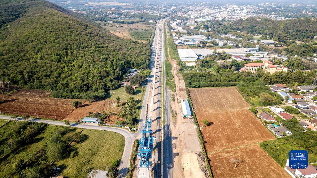 這是2023年2月23日在泰國呵叻府拍攝的中泰鐵路建設現場(chǎng)(無(wú)人機照片)。作為中泰共建“一帶一路”的旗艦項目及泰國首條標準軌高速鐵路,中泰鐵路采用中國標準設計建造,一期工程連接曼谷和呵叻,二期工程將實(shí)現與中老鐵路銜接,經(jīng)老撾磨丁和中國磨憨可以抵達昆明。