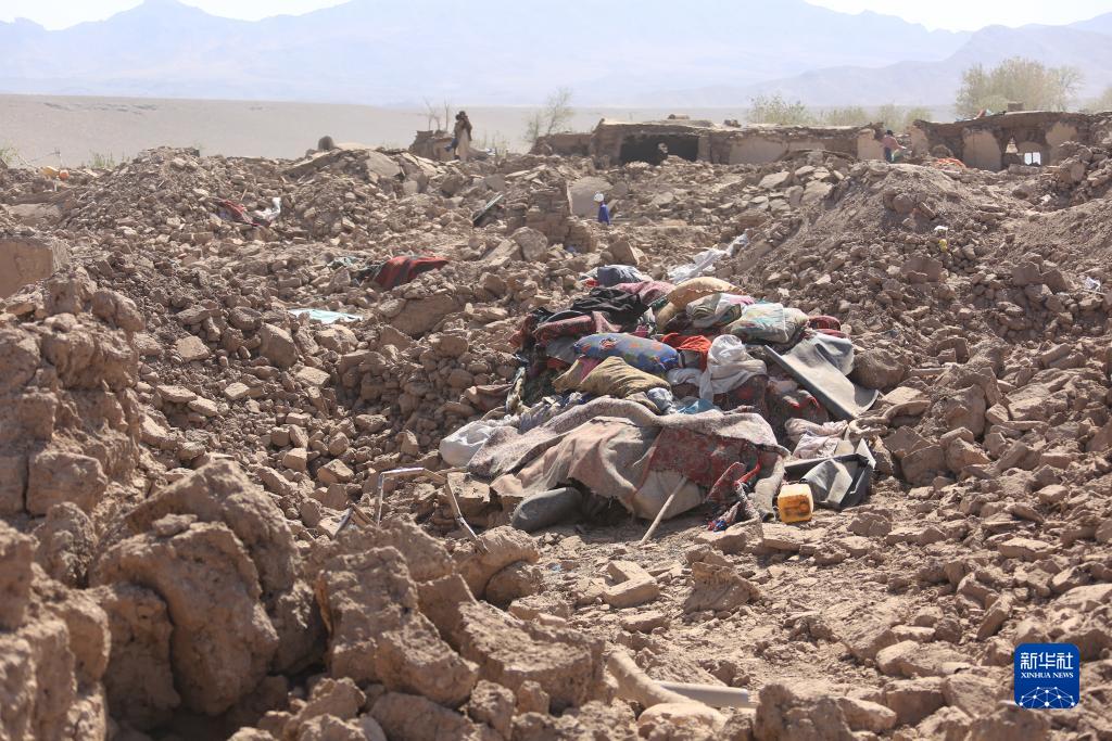 這是10月11日在阿富汗西部赫拉特省津達詹區奈卜拉菲村拍攝的震后景象。