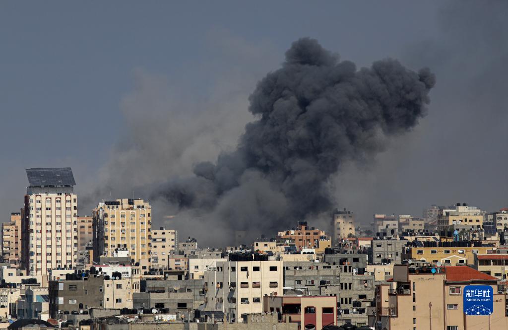 10月12日,加沙城的建筑遭以色列軍隊空襲后升起濃煙。