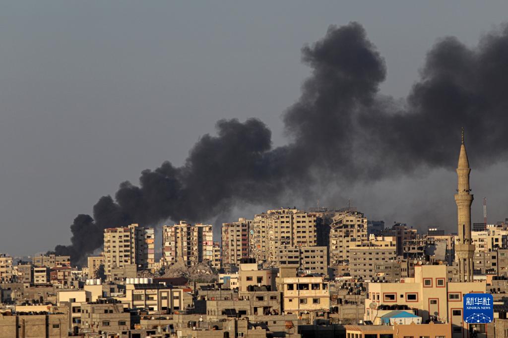 10月12日,加沙城的建筑遭以色列軍隊空襲后升起濃煙。