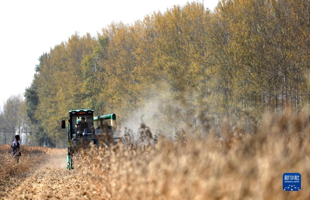 10月12日,收割機械在昌圖縣亮中橋鎮亮中村的大豆田里作業(yè)。