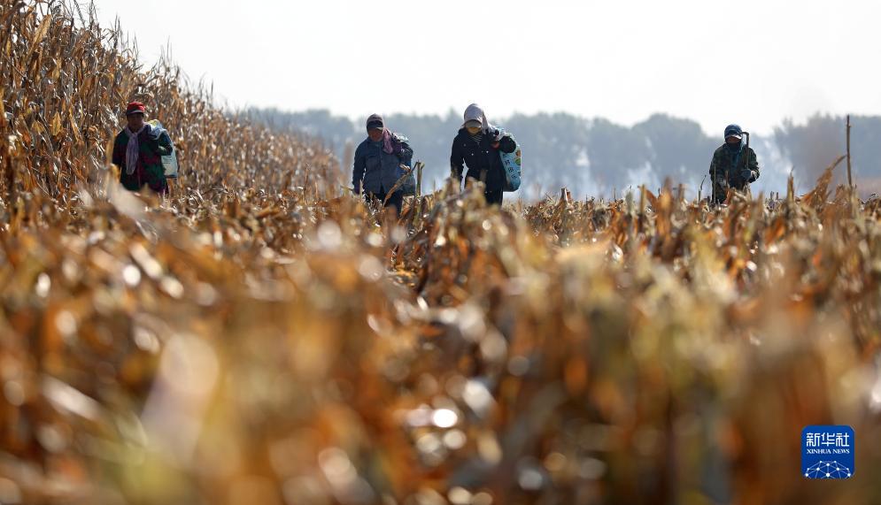 10月12日,幾名村民在昌圖縣亮中橋鎮永豐村的玉米田里進(jìn)行農機收割后的“補漏”作業(yè),確保顆粒歸倉。