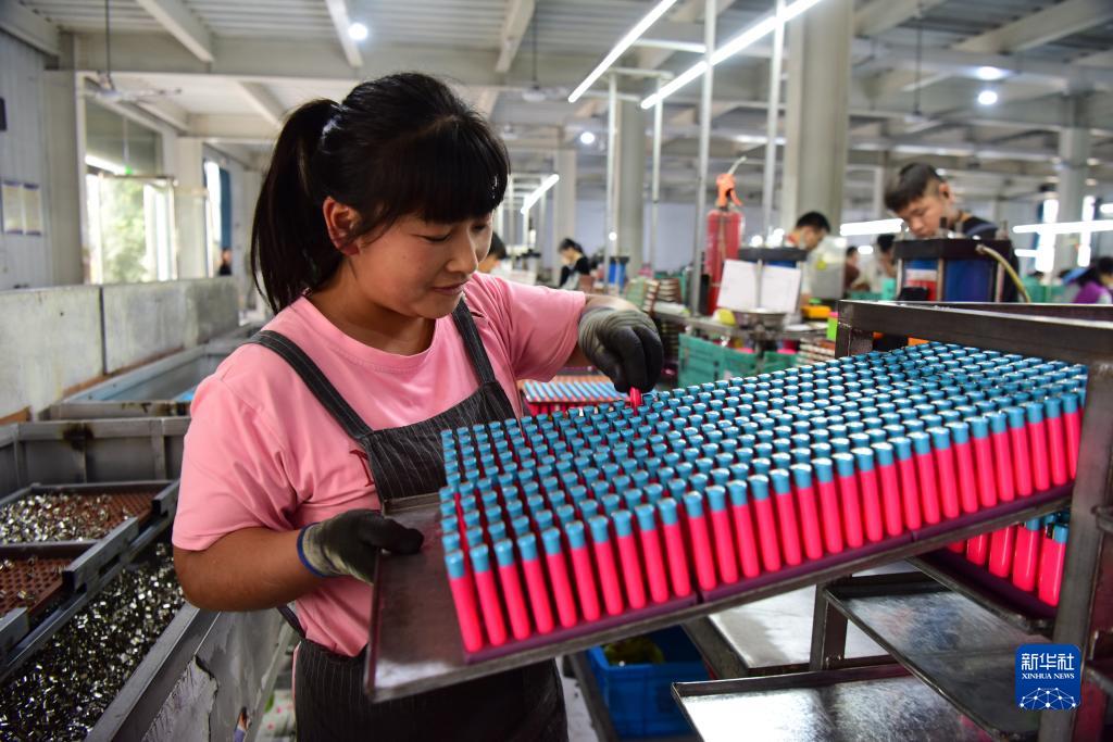 10月12日,工人在河南省夏邑縣會(huì )亭鎮一家打火機企業(yè)的生產(chǎn)車(chē)間工作。