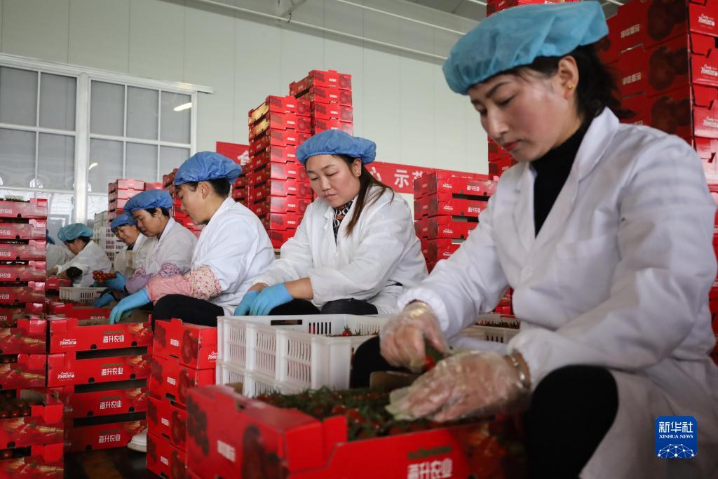 近日,在甘肅省平?jīng)鍪嗅轻紖^四十里鋪鎮的智能玻璃溫室里,采用基質(zhì)吊架立體栽培系統等技術(shù)培育的串收番茄陸續成熟,務(wù)工人員忙著(zhù)收獲、打包,準備進(jìn)行銷(xiāo)售。近年來(lái),平?jīng)鍪兄?zhù)力發(fā)展設施蔬菜產(chǎn)業(yè)鏈,不僅為市場(chǎng)提供了高品質(zhì)產(chǎn)品,還幫助群眾實(shí)現就近就業(yè)。