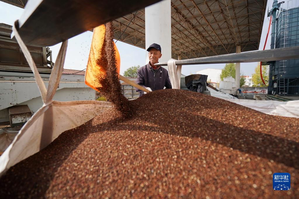 10月12日,河北省沽源縣一家藜麥加工企業(yè)的工人在整理收獲的藜麥。
