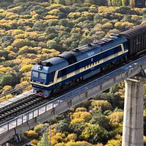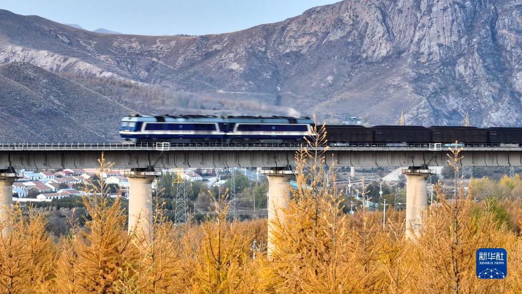 一列火車(chē)行駛在內蒙古自治區赤峰市克什克騰旗集通鐵路上(10月12日攝,無(wú)人機照片)。