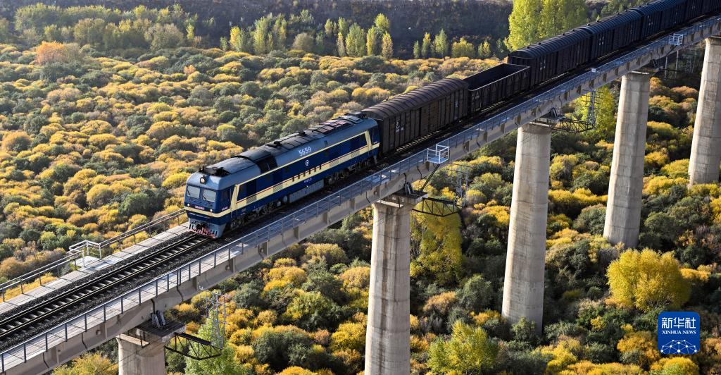 一列火車(chē)行駛在內蒙古自治區赤峰市克什克騰旗集通鐵路上(10月12日攝)。