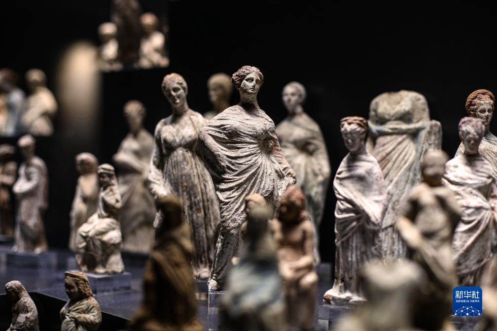 這是10月12日在埃及亞歷山大希臘羅馬博物館拍攝的展出的文物。