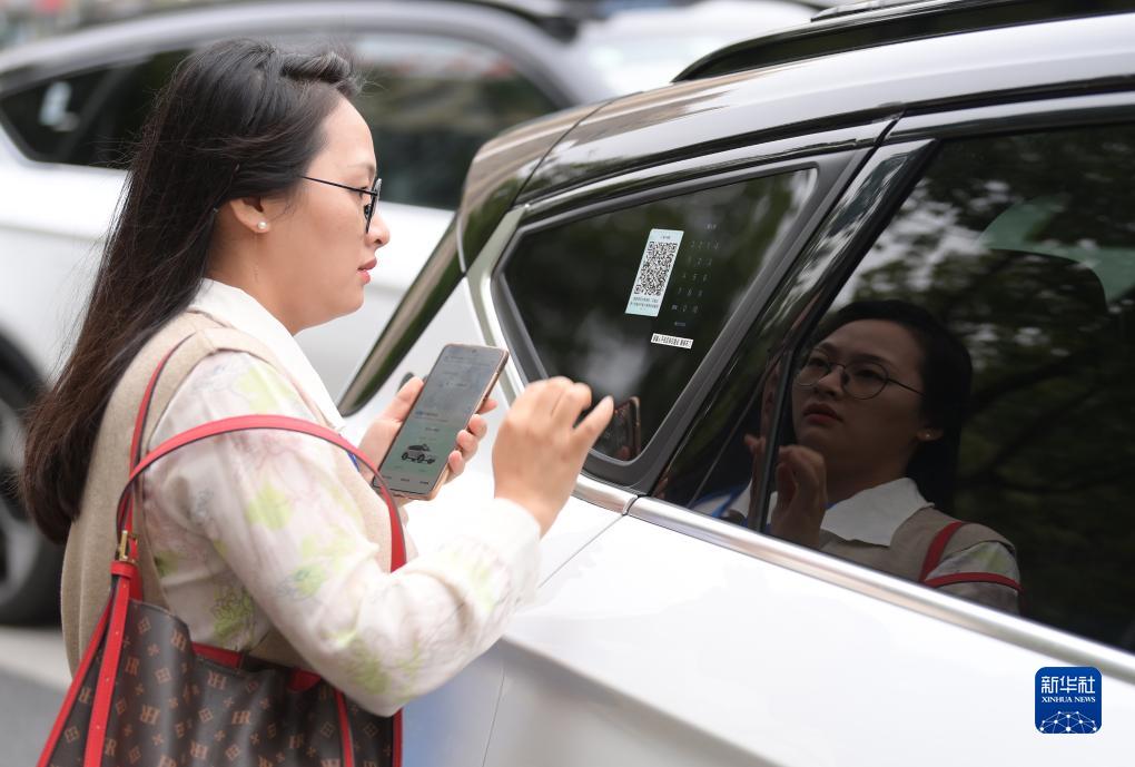 10月11日,一位試乘者在準備登上一輛無(wú)人自動(dòng)駕駛商業(yè)運營(yíng)車(chē)輛前輸碼解鎖。