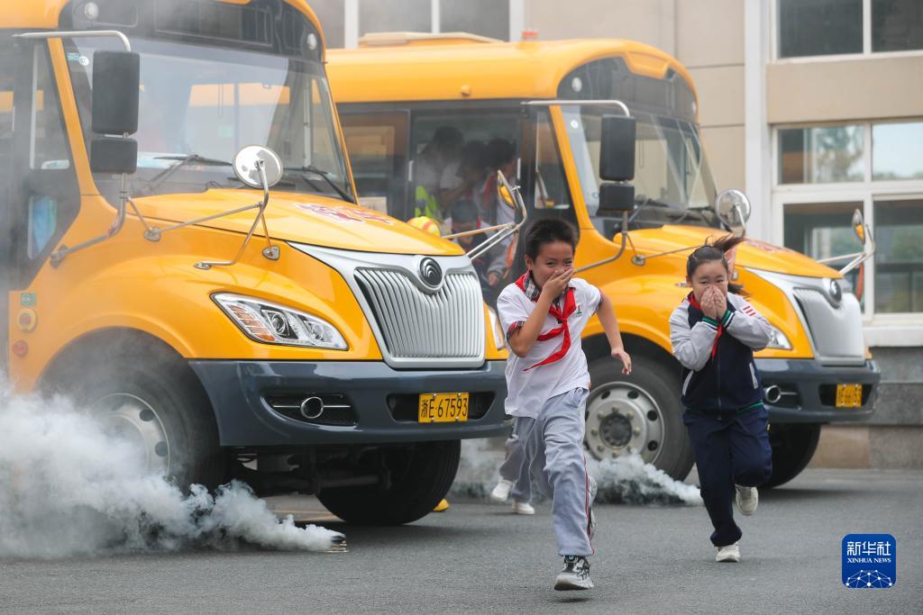 10月13日,浙江省湖州市德清縣洛舍鎮中心學(xué)校的學(xué)生在進(jìn)行應急疏散演練。