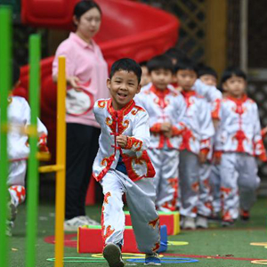 當日,天津市和平區第五幼兒園舉行秋季趣味運動(dòng)會(huì ),通過(guò)旱地龍舟等具有特色的游戲項目,讓孩子們在運動(dòng)中感受童趣與歡樂(lè )。
