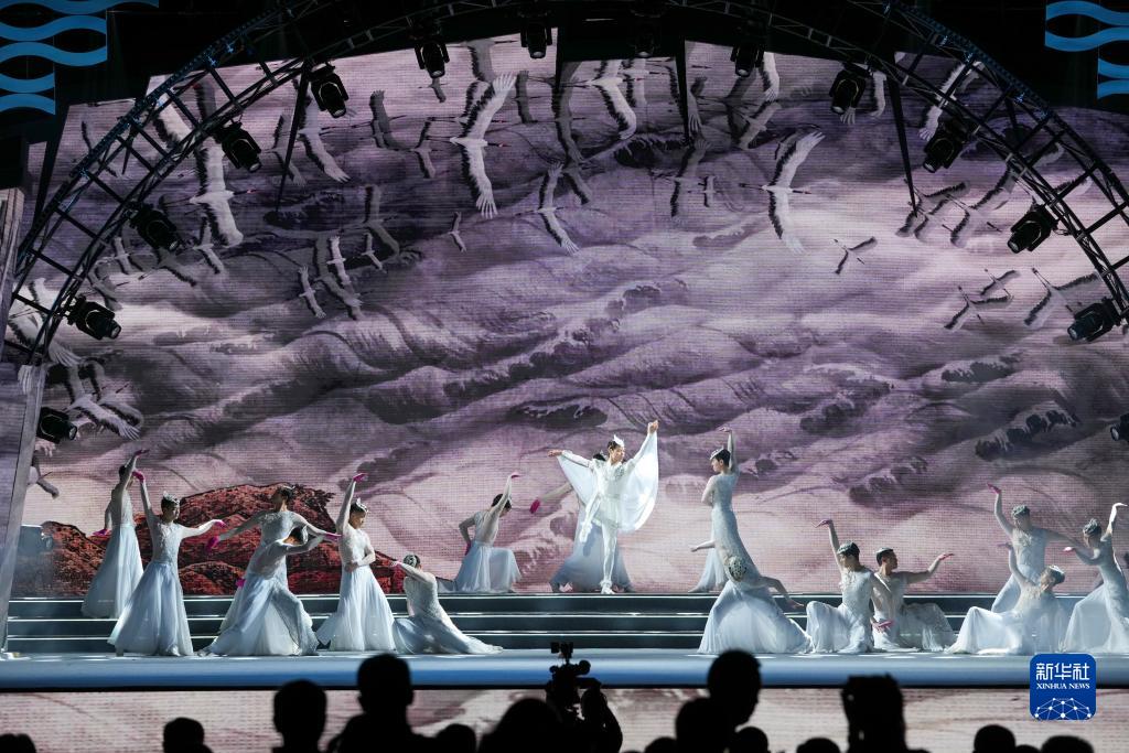 10月13日,在重慶涪陵舉辦的2023白鶴梁旅游文化節開(kāi)幕式上,演員表演舞蹈。