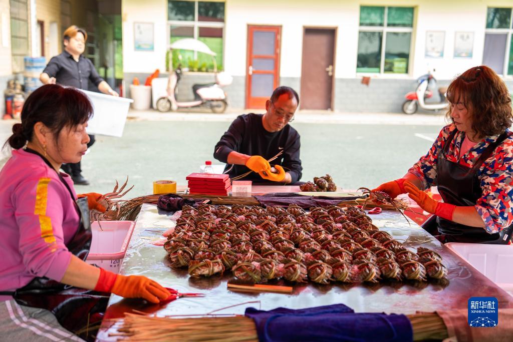 10月14日,在湖南省益陽(yáng)市河壩鎮沙堡洲村,蟹農在捆綁大閘蟹。