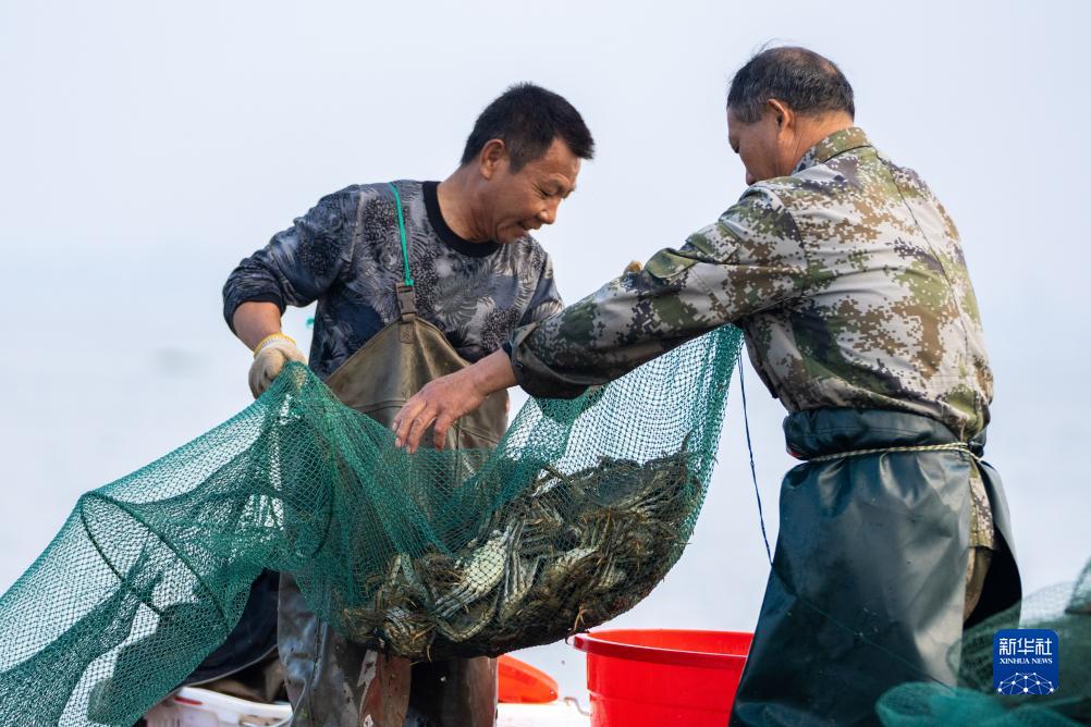 近日,洞庭湖養殖的螃蟹迎來(lái)了豐收季,湖南省益陽(yáng)市大通湖管理區的蟹農正抓緊捕撈,供應各地市場(chǎng)。大通湖是洞庭湖的重要組成部分,水產(chǎn)資源豐富。