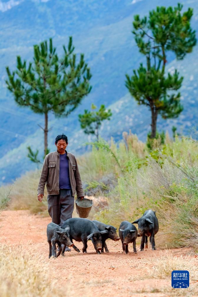 10月13日,在鄉城縣“蘋(píng)果+藏豬”種養循環(huán)現代農業(yè)園區內,當地藏族群眾格絨翁斗為青德鎮仲德村藏豬養殖專(zhuān)業(yè)合作社放養藏豬。