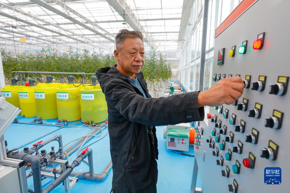 10月13日,在理塘縣瑪吉阿米花園農莊的智慧農業(yè)無(wú)土栽培館,工作人員劉振國操作控制柜。