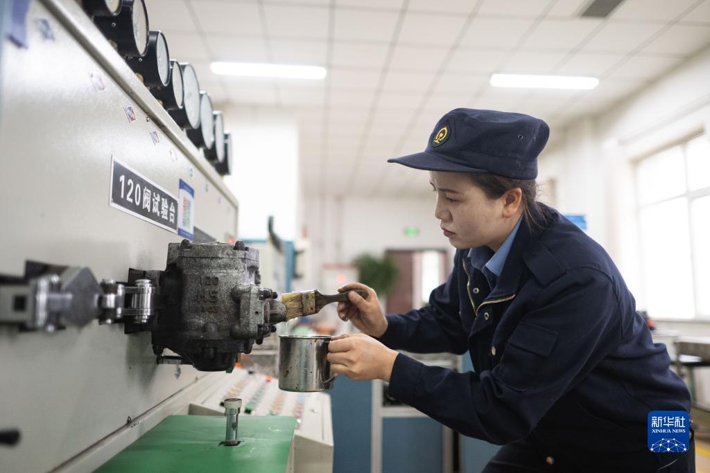 10月12日,在中國鐵路青藏集團有限公司西寧東車(chē)輛段制動(dòng)班組,馬婷在120閥試驗時(shí)涂抹檢漏劑。