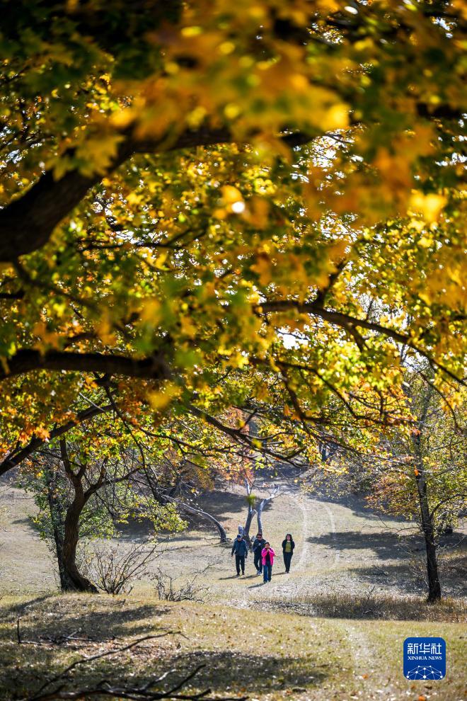 10月14日,游人在烏旦塔拉五角楓森林公園游覽。