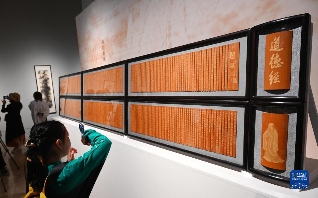 10月14日,觀(guān)眾參觀(guān)徐秉方父女歷時(shí)三年刻成的留青竹刻竹簡(jiǎn)作品《道德經(jīng)》。
