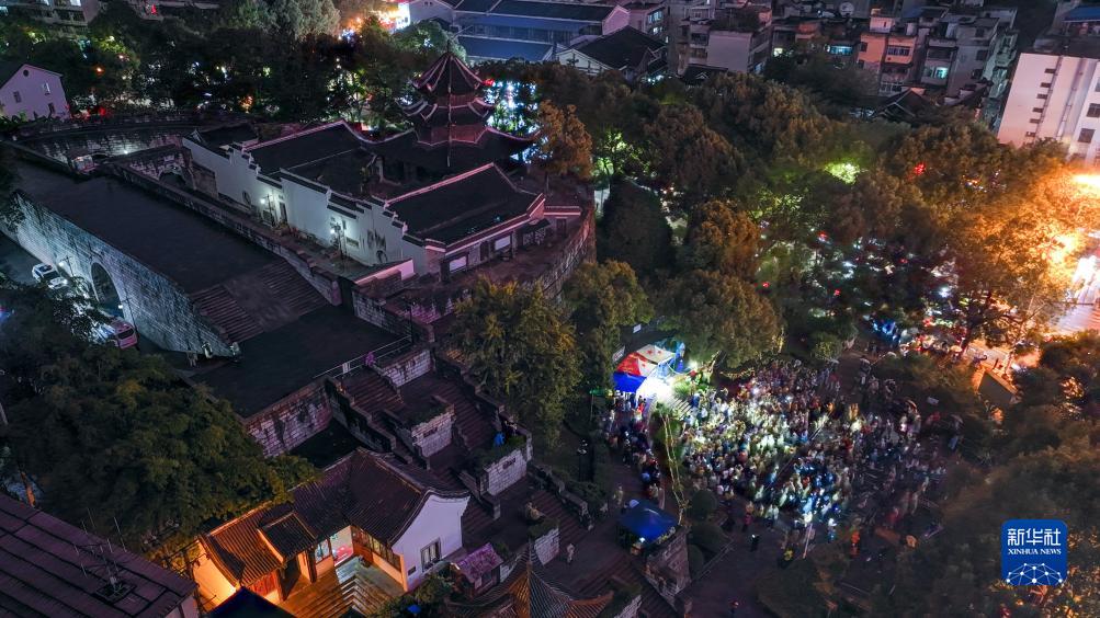 10月13日拍攝的貴陽(yáng)市文昌閣路邊音樂(lè )會(huì )現場(chǎng)(無(wú)人機照片)。