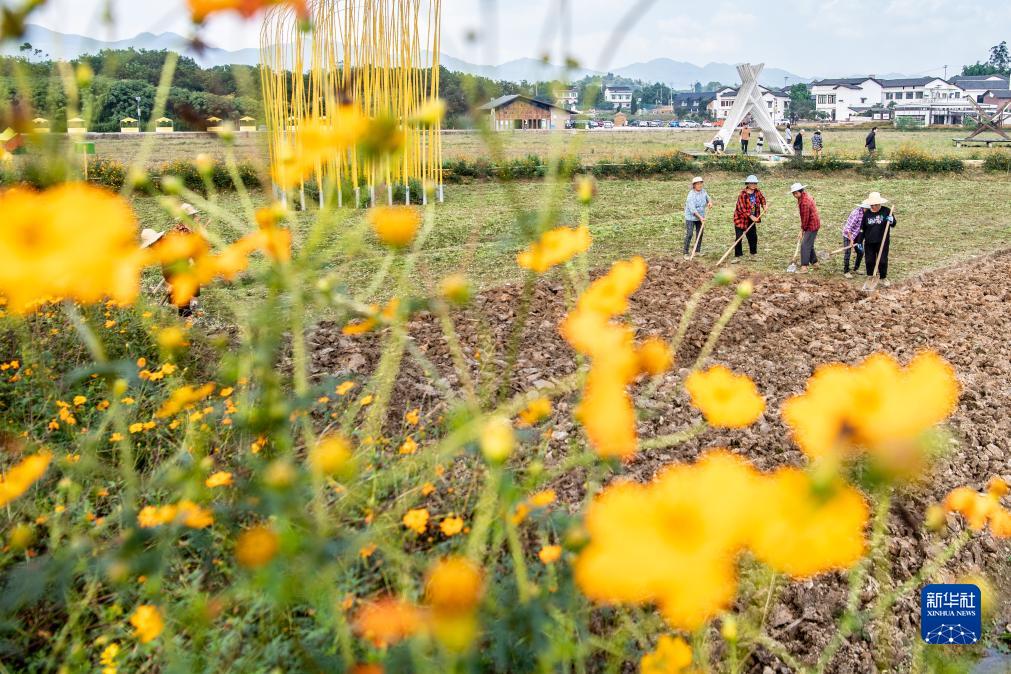 10月14日,重慶市將軍村的村民在田里翻土,為輪種油菜做準備。