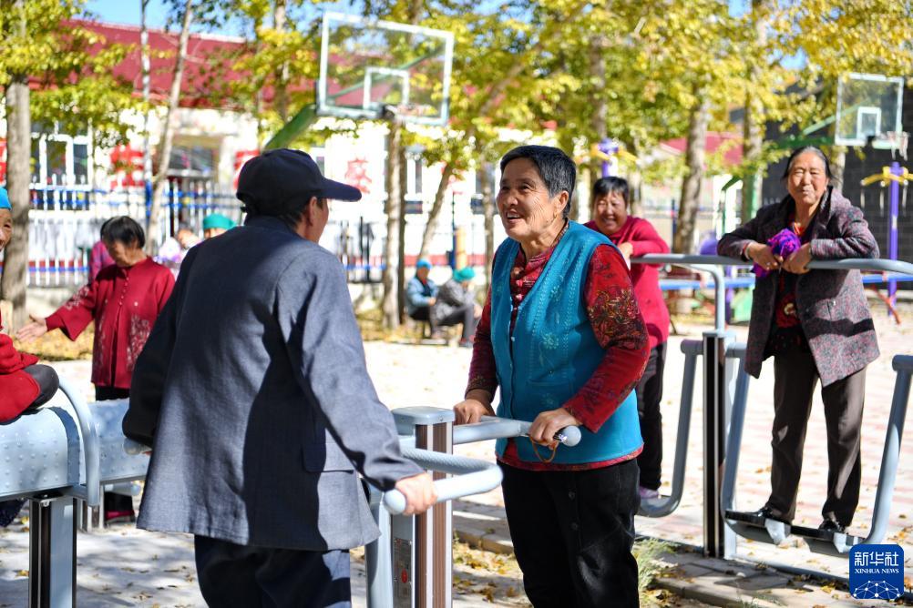 10月14日,居住在河北省康??h土城子鎮互助幸福院的老人們在院子里休閑。