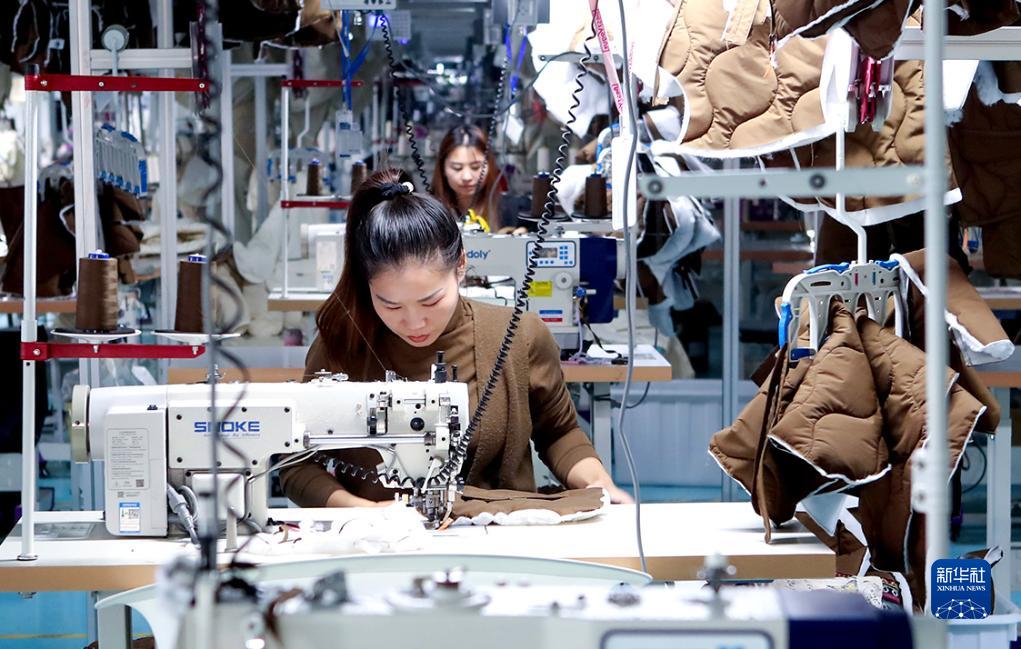 10月15日,河南省商丘市睢陽(yáng)高新區東霞制衣有限公司工人趕制羽絨服訂單。