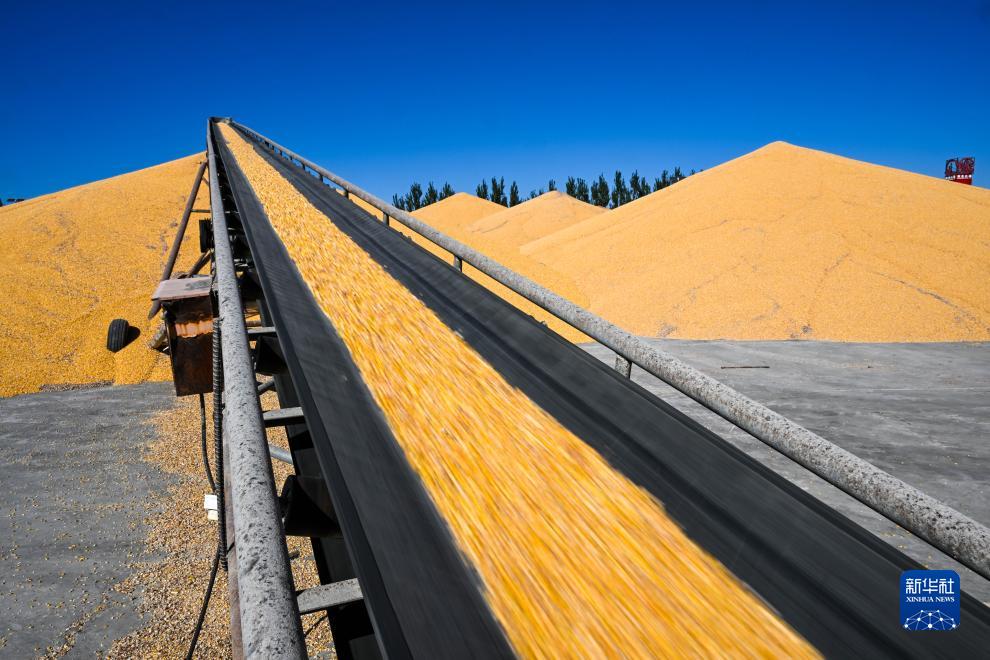10月15日,在內蒙古通遼市科爾沁左翼中旗腰林毛都鎮一家“糧食銀行”,經(jīng)過(guò)烘干的玉米堆積如山。