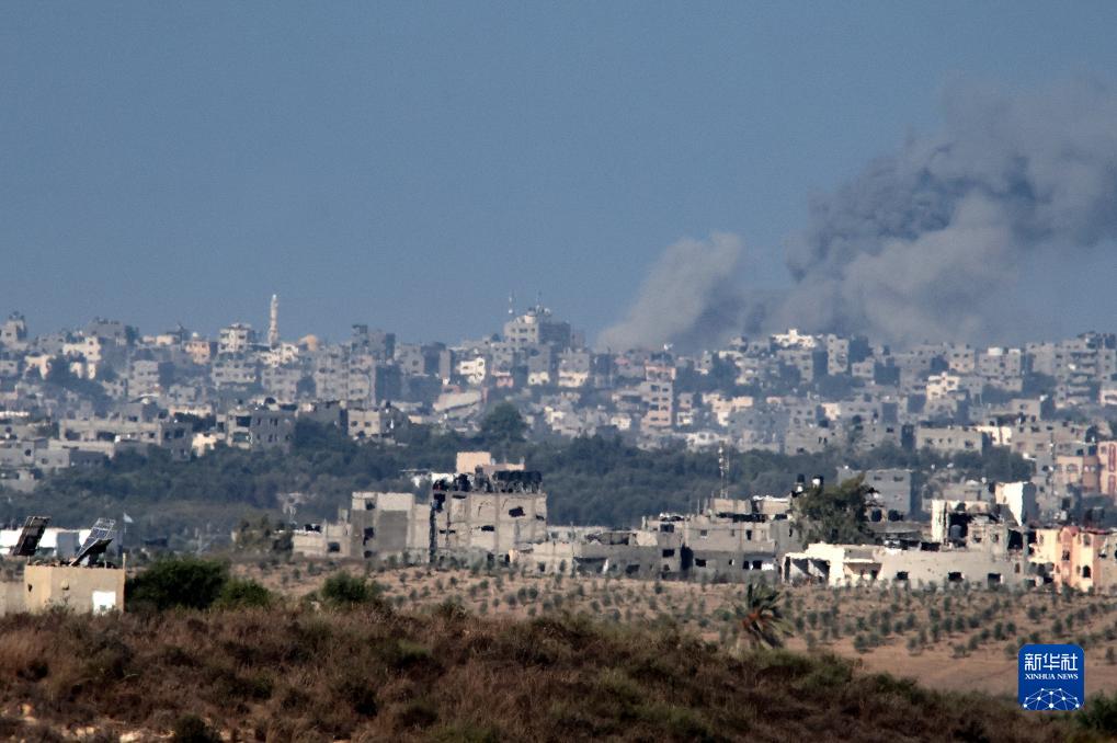 這是10月15日在加沙邊境以色列一側拍攝的以色列轟炸加沙地帶后升起的濃煙。